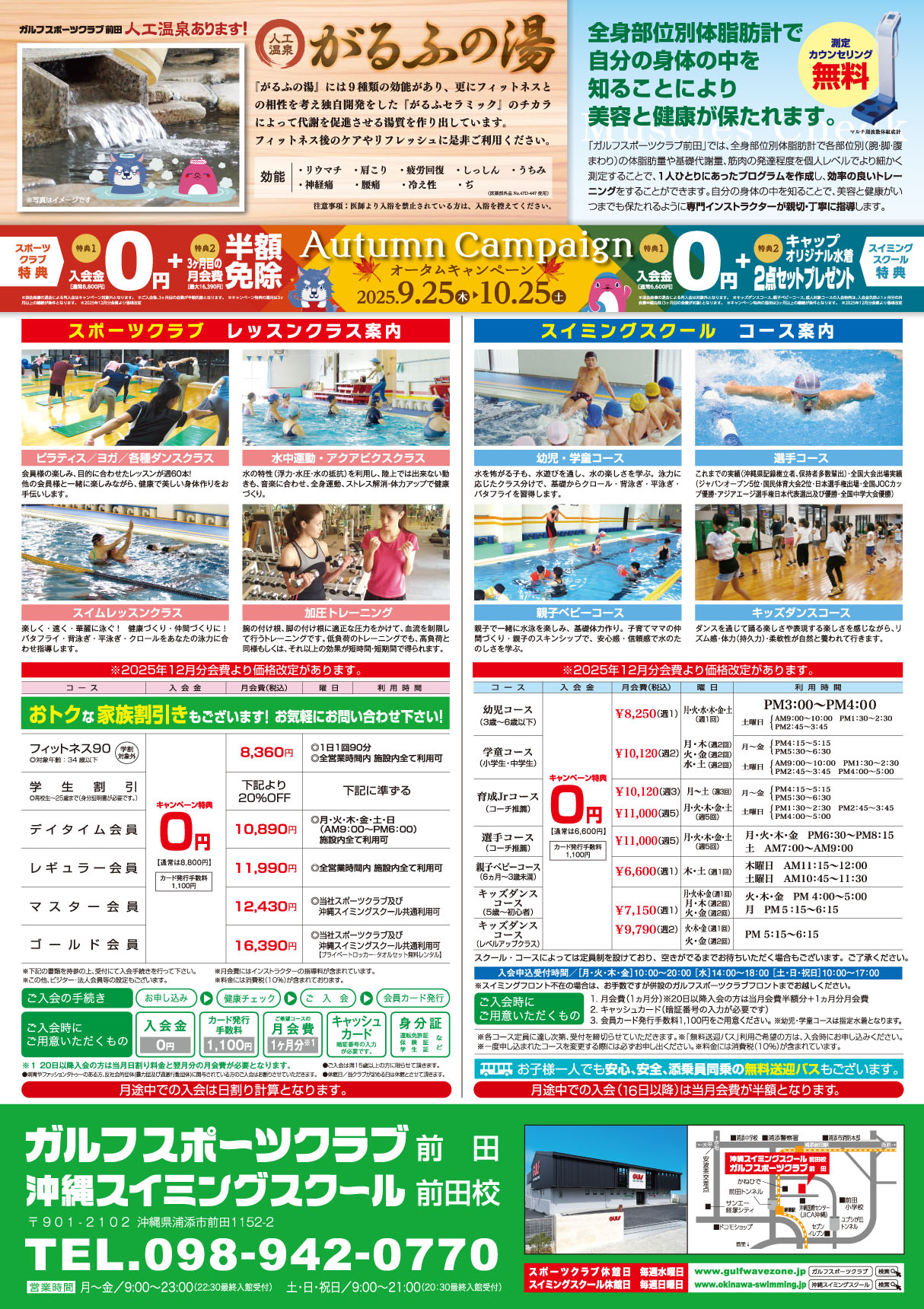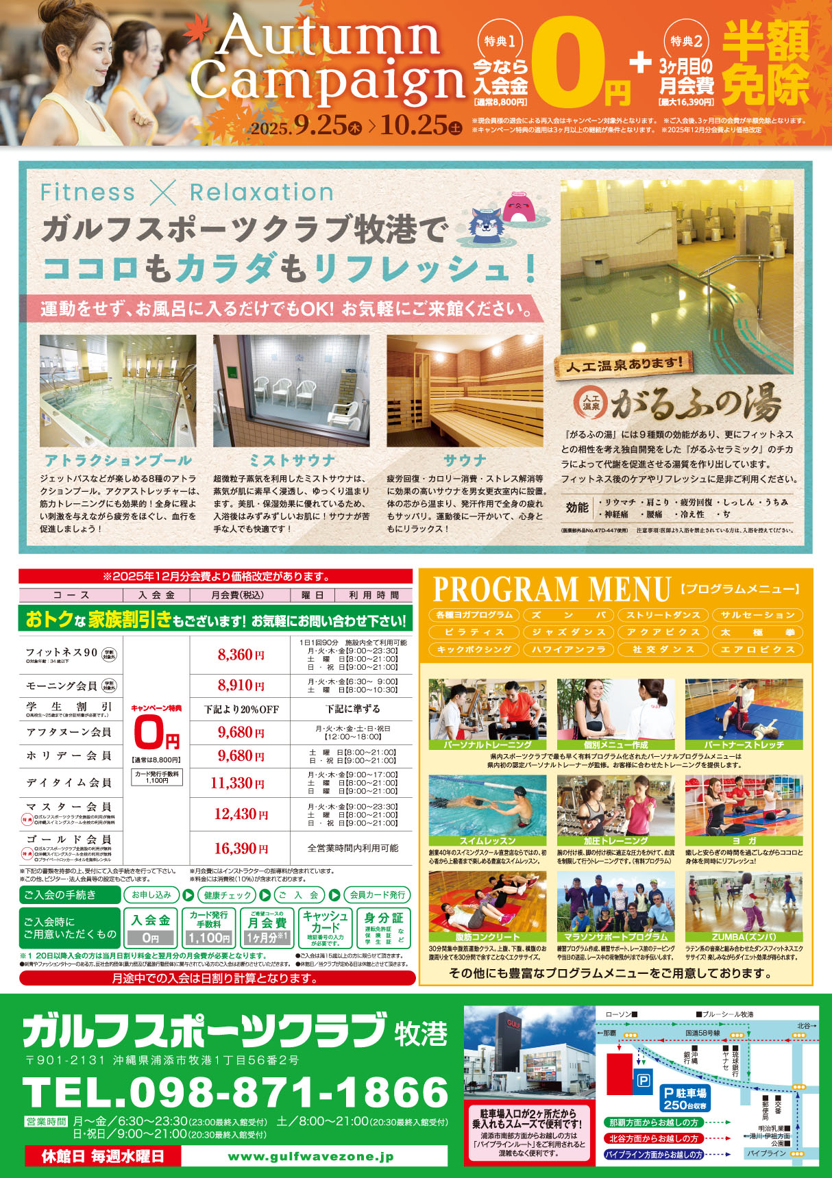 ※人工温泉「がるふの湯」はガルフスポーツクラブ牧港、前田でご利用いただけます。